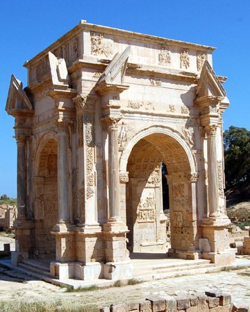 Départ pour Leptis Magna, la Rome africaine : découverte de l’Arc de Septime Sévère, des thermes d’Hadrien, du forum, du théâtre et du cirque.